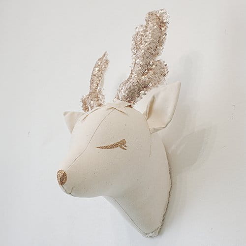 Ozdoba na ścianę Jelonek - kość słoniowa ze złotymi cekinowymi rogami.