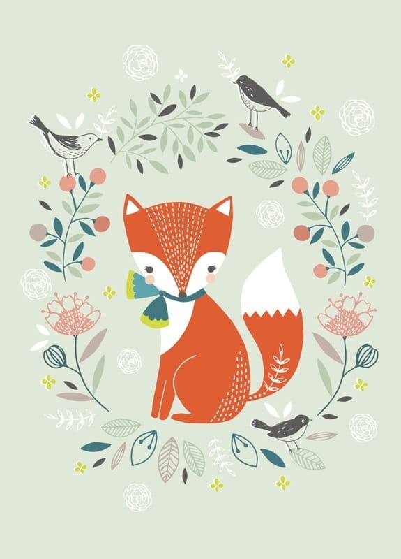 Pocztówka Lis w kwiatach zaprojektowana przez Flora Waycott.