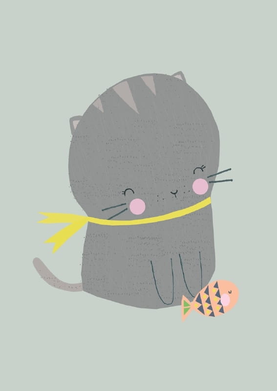 Pocztówka Kot z rybką zaprojektowana przez Vicky Riley.